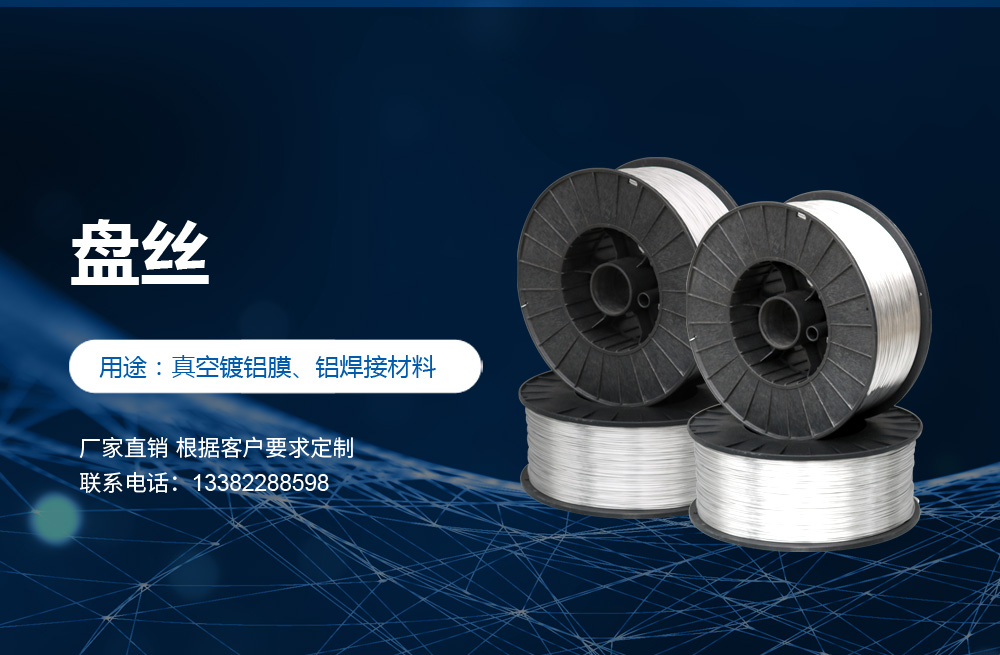 高純度鋁絲:公司主打產品。SGS認證產品,適用于真空鍍鋁。純度99.9%,可為客戶量身定做生產的各盤裝鋁絲、鋁直條。產品應用領域十分廣泛,如:真空鍍鋁膜、電器儀表、電子、家電業(yè)、電線電纜業(yè)、建筑裝飾業(yè)、五金裝飾業(yè)、IT電腦業(yè)、廣告裝飾業(yè)、醫(yī)療器械、工藝制品、防腐制品(大型港口、橋梁、碼頭)、食品包裝容器、紡織服裝等。